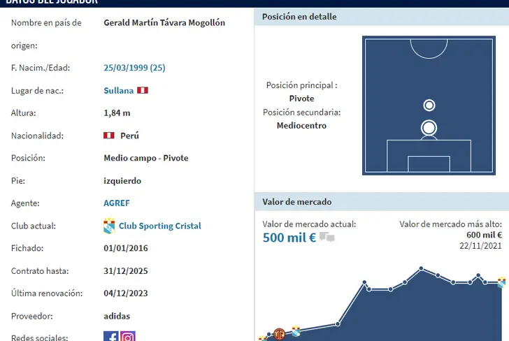 Martín Távara tiene una cotización internacional de 500 mil euros, lo que en soles daría un promedio cercano a los 2 millones, de acuerdo al portal especializado 'Transfermarkt'. Su mejor precio monetario fue de 600 mil euros cuando en la temporada 2021 era una de las verdaderas figuras de Sporting Cristal que bajo el mando del profesor Roberto Mosquera se consolidó en el 11 titular, un aspecto por el que ahora deberá luchar en esta Liga 1 2024.