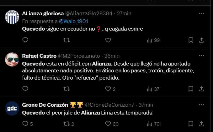 La utilización de Quevedo en una posición que no es la suya no solo limitó su capacidad para influir en el juego ofensivo, sino que también expuso las debilidades defensivas del equipo. El extremo derecho de Alianza Lima fue constantemente superado por los jugadores de Sport Huancayo, lo que generó varias ocasiones de gol para los visitantes.