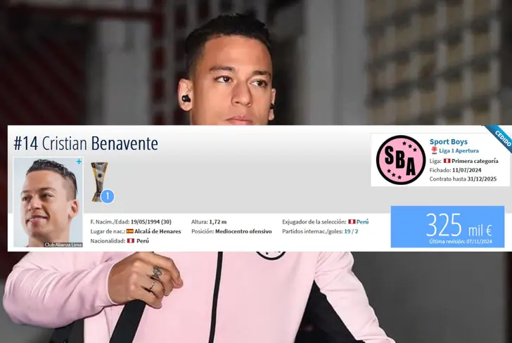 Actualmente, el valor de mercado de Benavente se ha devaluado considerablemente. Según Transfermarkt, el volante peruano está tasado en tan solo 325 mil euros, una cifra muy lejana a los 5.5 millones de euros que pagó el Pyramids FC de Egipto por él en 2018.