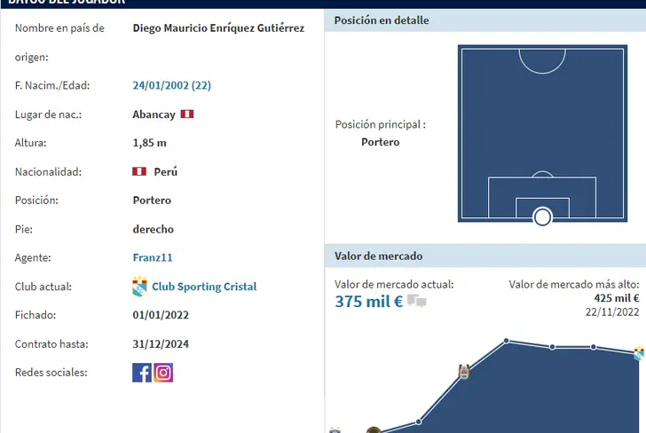 Según el portal especializado 'Transfermarkt', Diego Enríquez tiene un precio monetario de 375 mil euros, lo que en soles daría un promedio cercano a los 1,5 millones. Así como hoy es una de las grandes estrellas de Sporting Cristal en el duelo contra Alianza Lima, no podemos perder de vista que a partir de la segunda fecha del Torneo Clausura 2024 se ganó un lugar en el 11 titular dentro de las planificaciones estelares del profesor Guillermo Farré y debido a sus rendimientos está clarísimo que nadie lo moverá de ahí.