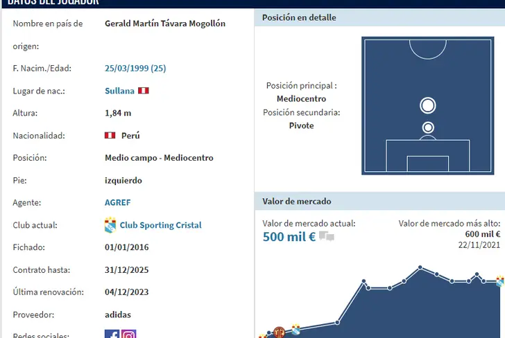 Según el portal especializado 'Transfermarkt', podemos apreciar que Martín Távara tiene una cotización internacional de 500 mil euros, lo que en soles daría un promedio cercano a los 2 millones. Ahora, si es que finalmente con el rendimiento de hoy en el partido entre Atlético Grau de Piura vs Sporting Cristal ha convencido al profesor Guillermo Farré de que merece ser titular, pues es muy probable que el zurdo sea capaz de incrementar su ficha mundial de una manera mucho más exponencial a la de ahora.