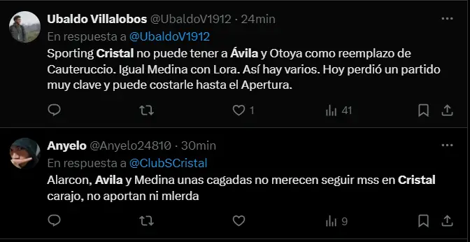 “Incómodo por el resultado. Creo que no era lo que buscábamos, pero bueno. Esto es parte del fútbol. En el primer tiempo no nos hallamos y ellos aprovecharon dos pelotas. Hay que voltear la página y ahora pensar en el siguiente rival. Éramos conscientes de eso y lo hablamos en toda la semana, pero bueno son situaciones que pasan dentro del fútbol. Toca revertir nada más y seguir trabajando”; declaró Ávila ante las cámaras de ´L1 Max´ en señal de ser conscientes de que perdieron la chance de ser punteros.