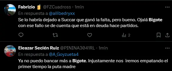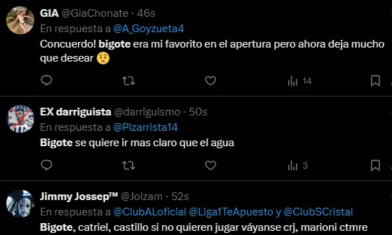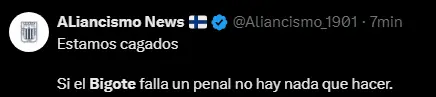 Los hinchas de Alianza Lima han perdido toda la confianza en el jugador Sebastián Rodríguez y se puede ver en las redes sociales, donde más de uno salió a pedir explicaciones por lo sucedido. Consideran que el popular 'Bigote' ya no quiere seguir en el club. Otros ya perdieron la fe por completo en él, ya que lo consideraban uno de los mejores jugadores del plantel. Sin embargo, este crédito se va apagando poco a poco con este penal fallado que pudo ser una buena ventaja para los íntimos.