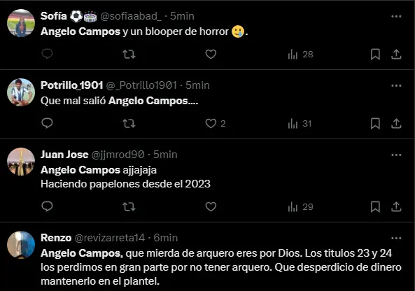 🔹 "Ángelo Campos, qué mi... de arquero eres por Dios. Los títulos 23 y 24 los perdimos en gran parte por no tener arquero. Qué desperdicio de dinero mantenerlo en el plantel."