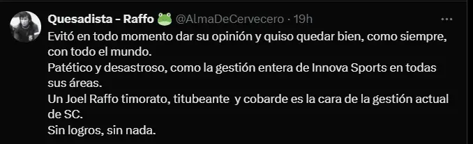 Desde que se conoció la noticia de que Raffo no renunciaría, las redes sociales se han convertido en un hervidero de opiniones negativas hacia el presidente celeste. Los hinchas han utilizado diversos hashtags y han creado memes para expresar su rechazo y molestia. Las críticas se centran principalmente en los siguientes puntos: