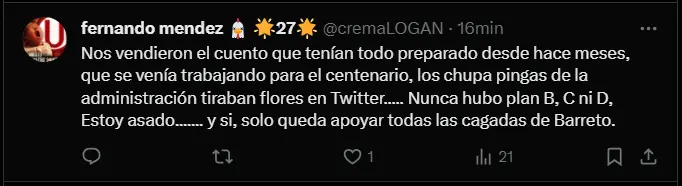 Y es que si ponemos atención a las palabras de los aficionados cremas que han recibido la noticia como un tremendo baldazo de agua fría, nos vamos a dar cuenta de que las opiniones andan muy divididas en todo el sentido de la palabra. Algunos esperaban al venezolano César Farías, quien se supone que tenía todo arreglado para llegar a Ate, y otros simplemente no están de acuerdo con la llegada del estratega argentino que este 2023 anduvo por Ecuador y Brasil.
