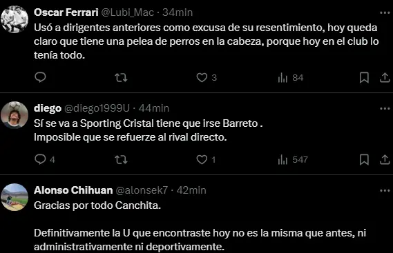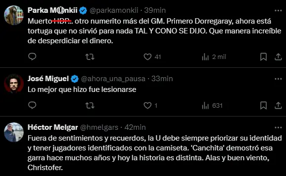 Definitivamente, el hincha no está para nada contento con esta decisión que se tomó con Christofer Gonzales, sobre todo por el motivo de que se invirtió bastante en su contratación. Sin embargo, se termina yendo a solo meses de haber llegado en el año del Centenario, lo cual genera mucha molestia al hincha. Este no solo atacó al futbolista, sino también a Manuel Barreto, quien es Director Deportivo en Universitario de Deportes.