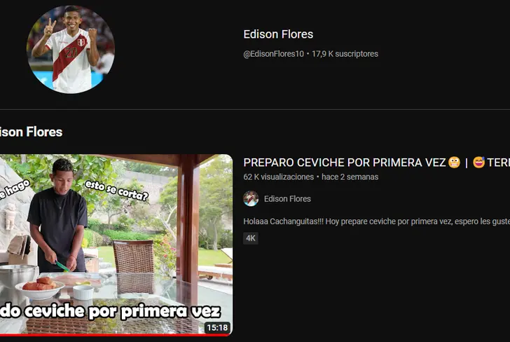 Programas con nombres como ´Visitando una cevichería en Magdalena´, ´Invita el más codo del club Parte 1 y 2´ y ´Preparo ceviche por primera vez´ son los programas que hasta el momento se encuentran disponibles en el canal oficial de un Edison Flores que se le ve muy ameno y distendido en una faceta que nadie esperaba, pero que en la cual está dejando muy en claro que también la puede romper fuera de los campos de juego para darle mayores alegrías a sus miles de seguidores.