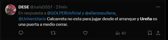 Universitario de Deportes viene disputando un encuentro complicado que en la previa cualquiera hubiera pensado que se daría mucho más sencillo ante un Alianza Atlético de Sullana que ha llegado al Estadio Monumental de Ate para hacer su trabajo de gran manera y en cierto modo le estaría funcionando, sobre todo cuando en el cuadro merengue hay algunos nombres que no estarían rindiendo al 100% de sus capacidades.