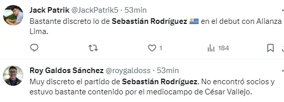 El hincha no lo pasó pasar desapercibido, que lo notó bastante discreto su participación, se esperaba mucho más de él, algo que si es cierto es que Sebastián Rodríguez llega a este equipo a poco del inicio de la Liga 1, por lo que el falta seguir agarrando ritmo, por lo que tendrá que trabajar mucho para ponerse al 100% lo más pronto posible.