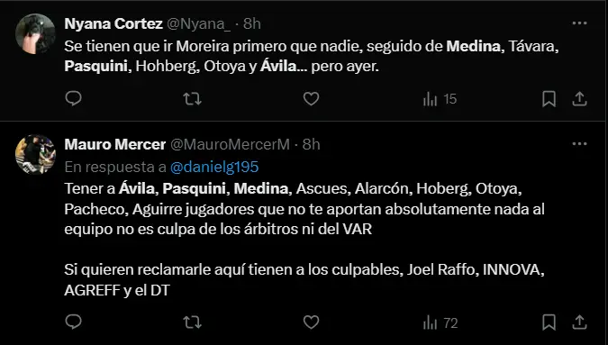 El hincha rimense ya no los soporta ni tampoco los quiere ver ni en pintura. Estamos hablando de Irven Ávila, Franco Medina y Nicolás Pasquini, quienes por vergüenza propia podrían decirle al comando técnico que tranquilamente quieren un lugar en el banco de los suplentes de cara a las próximas jornadas para no seguir generando duros cuestionamientos ya que por un bien personal los beneficiaría muchísimo. Apuesta en Betsson a los partidos de las mejores ligas del mundo y recibe un bono de bienvenida de 50 soles