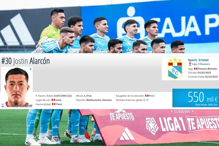 Jostin Alarcón tiene un precio internacional de 550 mil euros, lo que en soles daría un promedio cercano a los 2,2 millones, de acuerdo al portal especializado 'Transfermarkt'. En cuanto al tiempo de contrato que tiene con Sporting Cristal, podemos apreciar que va hasta diciembre del año 2025, por lo que en el papel todavía tendría un buen tiempo para seguir demostrando de qué está hecho y de las condiciones que tiene para romperla en el cuadro bajopontino.