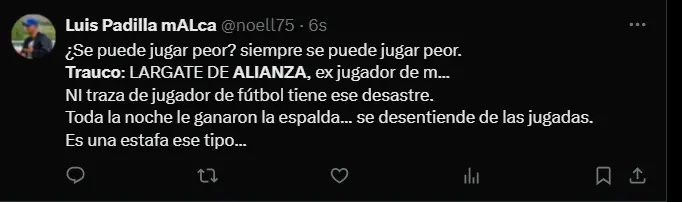 Además de los problemas defensivos, Miguel Trauco mostró una notable falta de precisión en los pases. Durante el encuentro, varios de sus intentos de balón largo fueron imprecisos, perdiendo la posesión en momentos claves y dificultando la salida limpia de Alianza Lima. Los errores en la entrega del balón fueron recurrentes, lo que cortó el ritmo de juego y permitió que Libertad tomara el control de las acciones. En este tipo de partidos, donde cada pase cuenta, los fallos de Trauco no pasaron desapercibidos.