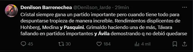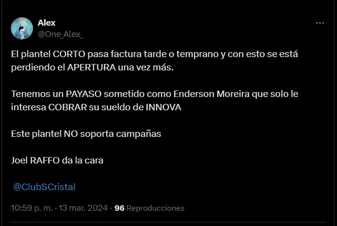 Nombres como los de Irven Ávila y Nicolás Pasquini son duramente cuestionados en las redes sociales y con justa razón ya que parecer estar en otra velocidad de lo que realmente exigen partidos como este. Otros quizá dirán que Enderson Moreira es el principal responsable de esta lamentable derrota para los rimenses y claro que lo es, pero hay otro nombre que tiene muchísima injerencia en el armado del plantel 2024. Apuesta en Betsson a los partidos de las mejores ligas del mundo y recibe un bono de bienvenida de 50 soles