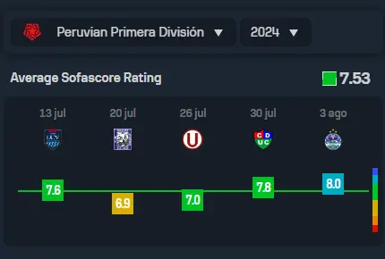 En cuanto a la calificación media, ya la conocemos, que es de 7.53, pero en los partidos jugados en Alianza Lima hablamos de 25 encuentros disputados, 2 goles y 6 asistencias. Si bien no parece mucho su aporte, siempre está presente en los goles, ya sea con un pase que termina desviado, penales, etc.