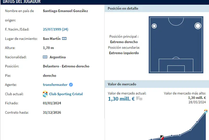 La estrella argentina de Sporting Cristal tiene un precio monetario de 1,3 millones de euros, lo que en soles daría un aproximado cercano a los 5,2 millones, de acuerdo al portal especializado ´Transfermarkt´. De esta manera queda demostrado la relevancia que tiene en el equipo y en el debut del Torneo Clausura frente a ADT de Tarma en condición de visita deberá estar recontra encendido para que los celestes puedan empezar con el pie derecho el segundo semestre del campeonato nacional.
