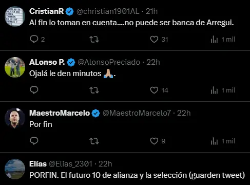 Al enterarse de la noticia, los hinchas de Alianza Lima no dejaron de notar su felicidad, pues varios estaban esperando que pudiera llegar al primer equipo. Ahora tendrá que mostrarse en el primer equipo para sorprender a Mariano Soso y así puedan tenerlo en cuenta para los próximos partidos. Aunque esto no va a ser una tarea para nada sencilla, ya que hay varios jugadores que también están compitiendo para poder estar en la nómina final en cada uno de los encuentros por el Torneo Clausura.