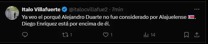 "Ya veo el porqué Alejandro Duarte no fue considerado por Alajuelense. Diego Enríquez está por encima de él" y "Error claro de Alejandro Duarte para el 2-1 de ADT sobre Sporting Cristal"; son algunos de los comentarios más llamativos que se pueden apreciar en las redes sociales respecto a las sensaciones de los aficionados cerveceros al ver que el arquero llegó como un refuerzo de lujo, pero que hoy en el debut no estuvo a la altura de las expectativas cuando en el tercer gol del cuadro local se lo comió por completo.