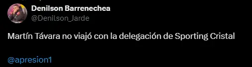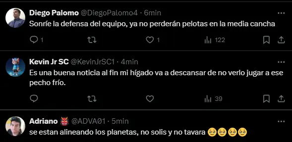 Por parte de los hinchas de Sporting Cristal más que ponerse nerviosos por esta ausencia, se les ha podido ver muy contentos, pues consideran que Martín Távara es un jugador que no le suma al equipo, sobre todo a la hora de hablar de la pérdida de balones, algo que se le reclama mucho por parte de la afición 'rímense'.