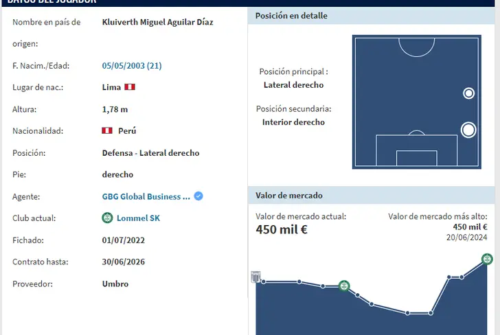 Es así que ya podemos entender que el futuro cercano de Kluiverth Aguilar se encontraría en el fútbol europeo y no en Alianza Lima. Con la camiseta del Lommel SK de Bélgica, el defensor peruano ha disputado un total de 31 partidos durante la temporada pasada, donde anotó 1 gol y dio 1 asistencia, con lo cual sumó un total de 2496 minutos en el terreno de juego. No hay duda alguna de que su crecimiento está expuesto a nivel internacional y no en regresar a la Liga 1 peruana, lo cual representaría un retroceso en su crecimiento, más aún cuando con 21 años tiene mucho por aprender.