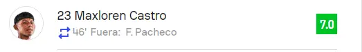 Por ejemplo, el día de hoy con Sporting Cristal disputó los 45 minutos del segundo tiempo ante Cienciano de Cusco. Según 'Sofascore', completó un 93% de pases acertados, 4 duelos ganados de 8 posibles, 28 toques del balón y un puntaje muy bueno de 7. Picante, potente y veloz por el extremo izquierdo del ataque, Maxloren Castro dejó en evidencia que se encargará de que la hinchada cervecera no extrañé más a Joao Grimaldo y que a partir del día de hoy puede ser capaz de estar por delante de otras opciones en el plantel como Fernando Pacheco y Alejandro Hohberg.