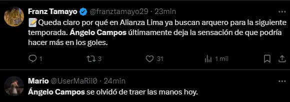 El portero no ha sido muy sólido a la hora de los partidos y menos ante César Vallejo, el 1-1 podría ser discutible por el hecho que termina siendo el remate desviado por un jugador, así que se complica atajar, pero el segundo si algo más pudo hacer, por lo que pensando que está abierto el mercado de pases, algún jugador mejor podrían traer para ese puesto en el que ya no tienen tanta seguridad y que es tan importante.
