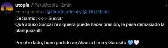 Su desempeño generó críticas entre los hinchas, quienes consideran que Succar no está a la altura de las exigencias de Alianza Lima. La falta de gol y su escasa participación en el juego colectivo son los principales cuestionamientos hacia el delantero.