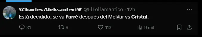 La derrota contra Melgar en Arequipa podría ser vista como un golpe mortal para el proyecto de Farré, dado que el equipo rojinegro ha sido históricamente un rival difícil, especialmente en su casa. Además, los rumores en redes sociales apuntan a que la paciencia de la dirigencia celeste se está agotando debido a los bajos resultados. Estos comentarios no son infundados, ya que el club tiene una gran exigencia tanto a nivel de títulos nacionales como internacionales. Si los resultados no acompañan, la presión sobre Farré se incrementa aún más.