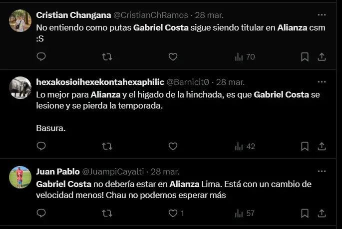 Para nadie es ninguna novedad que el cuadro victoriano tiene como principal anhelo conseguir un nuevo título para la institución y así volver a lo más alto del fútbol peruano. El año pasado se les escapó la oportunidad del tricampeonato y en este 2024 armaron un plantel muy importante para estar a la altura de las expectativas, así que de todas maneras deberían tener en cuenta que jugadores como Gabriel Costa no merecen nuevas oportunidades hasta nuevo aviso.