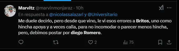 La salida de Diego Romero ha generado un debate sobre la idoneidad de Sebastián Britos como titular en el arco de Universitario. Si bien Britos ha tenido buenas actuaciones, el error cometido ante Comerciantes Unidos ha puesto en duda su continuidad. Por otro lado, Romero ha demostrado tener un gran potencial y podría ser una alternativa interesante para el futuro.