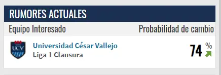 Resulta que tras una información del portal internacional ´Transfermarkt´ hemos podido conocer que ´El Chaval´ tiene un 74% de probabilidad de que pueda mudarse a la ciudad de la eterna primavera para probar suerte en una UCV que viene dando la hora con fichajes de peso como han sido los casos de José Carvallo y Josepmir Ballón, por lo que el arribo del ex Real Madrid Castilla le daría un mayor salto de calidad a una plantilla ansiosa de título y de éxito.