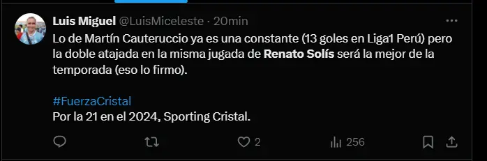Sporting Cristal venció con un contundente 0-4 a un Carlos Mannucci que ha empezado la temporada 2024 con un paupérrimo nivel que los tiene como principales candidatos a luchar por la permanencia en primera división, aunque ese tema es para otro día. Hablando netamente de los rimenses y de lo que han venido haciendo a lo largo de los 90 minutos en Trujillo, está clarísimo que Martín Cauteruccio se lleva todos los aplausos y las cámaras de los medios locales lo buscan en cada momento.