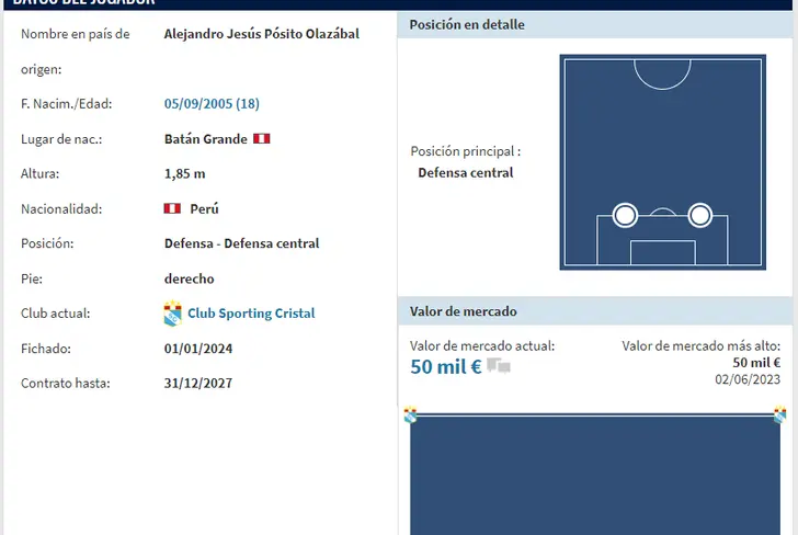 De acuerdo al portal especializado 'Transfermarkt', podemos ver que Alejandro Pósito tiene una cotización monetaria de 50 mil euros, lo que en soles daría un promedio cercano a los 200 mil. De todas maneras, no es un precio para nada alto ya que el defensor central recién está dando sus primeros pasos en el fútbol profesional, aunque de mantenerse en competencia y sumando minutos está clarísimo que su ficha internacional podría empezar a crecer en demasía.