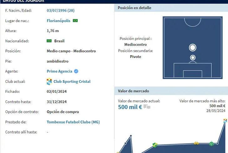 Según el portal especializado 'Transfermarkt', podemos apreciar que Gustavo Cazonatti tiene una cotización internacional de 500 mil euros, lo que en soles daría un promedio muy cercano a los 2 millones. Es importante mencionar que cuando llegó al cuadro celeste, proveniente del Chapecoense de Brasil, tenía un valor monetario de tan solo 200 mil euros, así que claramente nos damos cuenta de que en este semestre de competencia ha sido capaz de destacar e incrementar su ficha a nivel mundial.