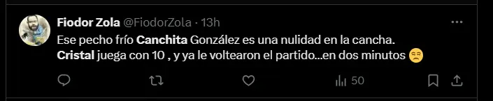 En momentos en los que Sporting Cristal necesitaba calmar el ritmo o retener la posesión, Gonzáles no asumió el protagonismo. El balón pasó más por los pies de Martín Távara y Santiago González que por los suyos, dejando dudas sobre su verdadero peso como generador de juego en encuentros de alto calibre.