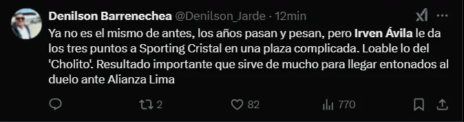 Tras su gol ante Sport Huancayo, Irven Ávila recibió el apoyo de los hinchas celestes, quienes reconocieron su importancia para el equipo. Este apoyo es fundamental para el jugador, quien se siente motivado para seguir trabajando y demostrando su valía.