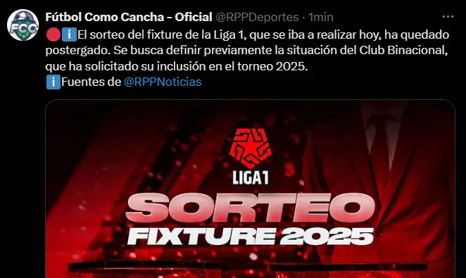 La Federación Peruana de Fútbol (FPF), presidida por Agustín Lozano, se encuentra nuevamente en el ojo del huracán. El sorteo del fixture de la Liga 1 2025, programado para hoy, ha sido postergado debido a una serie de controversias que envuelven al club Binacional.