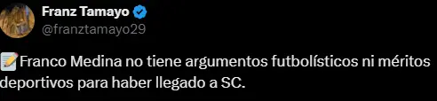 Según lo que podemos ver mediante Transfermarkt, el valor de Franco Medina es de 325 mil euros, esto si lo podemos hacer el cambio a la moneda local, nos da la suma de 1,3 millones de soles que al parecer están desperdiciados, pues este jugador de no mejorar, es de los grandes candidatos a irse de inmediato de Sporting Cristal.