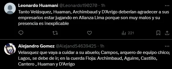 Tras el partido, las críticas en redes sociales no se hicieron esperar. Muchos hinchas aliancistas consideran que a Jhoao Velásquez aún le falta madurez para asumir responsabilidades en la defensa. No obstante, también reconocen que su juventud es un factor a tener en cuenta y que necesita mayor rodaje para consolidarse.