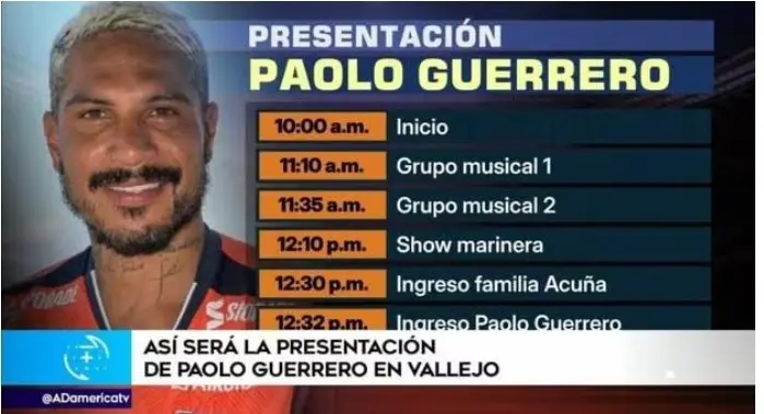 En un comienzo se tenía planeada que se presente a las 10 de la mañana, ese es el horario que todos sabían que iba a ser, pero después en el mismo día todo cambió y se dijo que llegaría a las 12:32, pero terminó cambiando todo, pues a las 12:50 aun no aparecía ni los Acuña ni mucho menos Paolo Guerrero, dejando en claro que no está llegando a un club que respete protocolos y que más parece chicha. Apuesta en Betsson a los partidos de las mejores ligas del mundo y recibe un bono de bienvenida de 50 soles