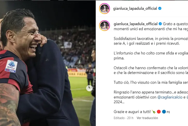 “Agradecido con este 2023 por todos los momentos únicos y emocionantes que me ha brindado. Satisfacción por el trabajo, principalmente por el ascenso del Cagliari a la Serie A, los goles marcados y los premios recibidos. La lesión la tomé como un desafío y tengo más ganas que antes de hacerlo. Obstáculos que confirmaron que la fuerza de voluntad supera todos los límites y que la determinación y el sacrificio son la clave de todo”; comentó el atacante de la Selección Peruana a través de sus stories en su cuenta oficial de instagram. Apuesta en Betsson a los partidos de las mejores ligas del mundo y recibe un bono de bienvenida de 50 soles