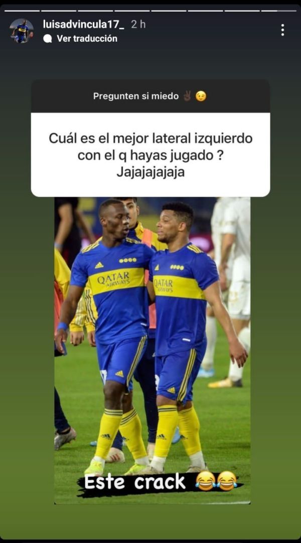 Una de las tantas preguntas que le hicieron fue: "¿Cuál es el mejor lateral izquierdo con que hayas jugado?". A lo que el 'Rayo' respondió con una foto con Frank Fabra, lateral de Boca de 30 años, junto con la frase 'Este crack".