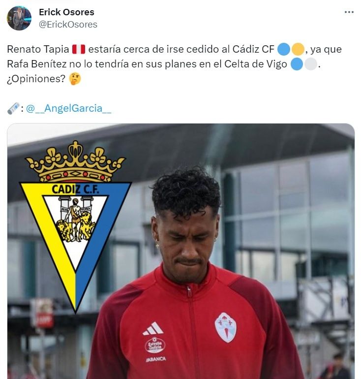 “Renato Tapia estaría cerca de irse cedido al Cádiz CF, ya que Rafa Benítez no lo tendría en sus planes en el Celta de Vigo”, resaltó Erick Osores en su cuenta de Twitter. Con este presente, cabe preguntarse: ¿Cuánto podría ganar el ‘capitán del futuro’ en Cádiz, a comparación de lo ganaba en Celta de Vigo?