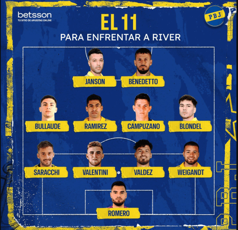 Romero; Weigandt, Valdez, Valentini, Sarachi; Blondel, Bullaude, Campuzano, Ramírez; Benedetto y Janson es el equipo titular que saltará al campo de juego de La Bombonera en tan solo unos minutos. En un marco imponente y de constante aliento por parte del hincha xeneize, el aficionado peruano espera con ansias que Luis Advíncula pueda tener minutos y de esta manera siga incrementando su nivel en esta clase de escenarios que captan la atención del planeta entero.