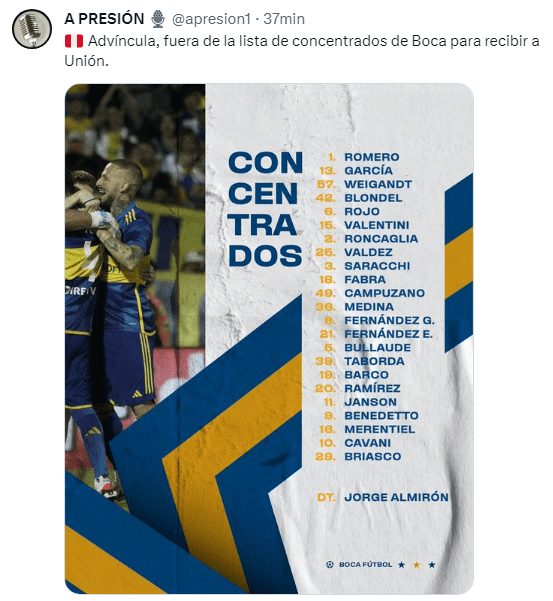 Se ha podido conocer que el cuadro de Jorge Almirón ha tomado la dura decisión de no incluirlo en lo que viene a ser la lista de convocados para el siguiente encuentro de los ‘xeneizes’, es así como tendrá más tiempo de descanso y no jugará ante Unión este viernes, por lo que se espera que pueda volver al encuentro contra Racing Club que será la próxima semana, así que ahí tendrá un espacio para volver a estar al 100% tras los viajes que hizo con la Selección Peruana.