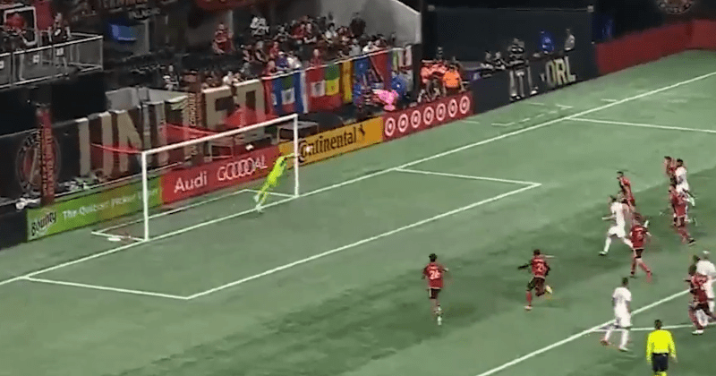 Esta jugada fue un tiro libre en el último minuto del partido frente a Atlanta United, ya el partido se acaba y se podría venir el empate del conjunto rival, el cuadro de Luis Abram tenía la oportunidad de lograr el empate por medio de Thiago Almada, quien le pegó bien al balón, pero para suerte del conjunto del Orlando City, ahí estaba Pedro Gallese para evitar el tanto con una tremenda atajada que dejó a todos impactados por lo buena que fue, un salto milagroso que ataja tremendo disparo.