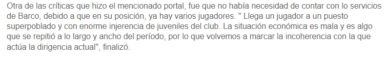 “Llega un jugador a un puesto superpoblado y con enorme injerencia de juveniles del club. La situación económica es mala y es algo que se repitió a lo largo y ancho del periodo, por lo que volvemos a marcar la incoherencia con la que actúa la dirigencia actual”; precisó el portal en mención dando un claro mensaje de lo que genera hoy en día la presencia del volante peruano.
