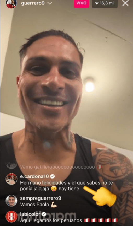 Justamente Edwin Cardona con el que compartió Paolo Guerrero apareció a la hora del festejo de LDU en el directo del ‘Depredador’, dejando un mensaje que sin duda alguna iba dedicado al entrenador argentino, pese a que no lo nombra, se sabe que sería él, ya que los 2 compartieron el mismo equipo. “Hermano felicidades y el que sabes no te ponía jajajaja ahí tiene”, publicó el colombiano en alusión al estratega argentino.