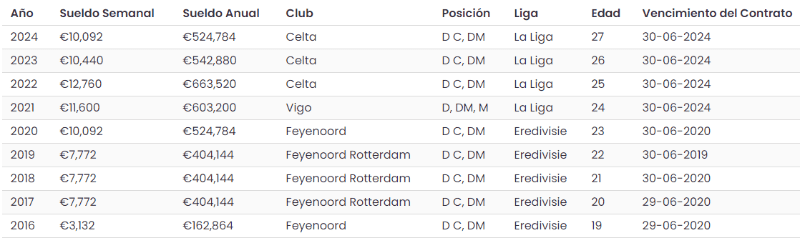 Según se ha conocido, Renato Tapia a la hora de poder ser jugador del Feyenoord y con varios años jugando acá, por medio de Salary Sports se pudo conocer que ganaba en su último año, 524 mil euros al año, mientras que en su inicio solo 162 mil al año, teniendo en cuenta que Oliver Sonne irá al AZ Alkmaar, vimos al lateral japonés Yukinari Sugawara, quien gana 171 mil euros al año.