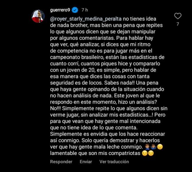 "Pero para que vean que hay gente malintencionada, que no tiene idea de lo que comenta. Simplemente es envidia que los hace reaccionar así conmigo. Solo quería demostrar y hacerlos ver que hay gente mala leche conmigo", fue lo que finalizó diciendo Paolo Guerrero.